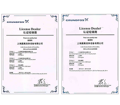 上海贏展流體設備有限公司是一家以水泵業(yè)務為主的流體設備銷售公司,2009年成立于上海。公司于2010年與格蘭富廠商正式簽訂代理協議,并取得授權代理證書;2014年格蘭富授權我司成立獨立的售后服務中心,是一家專業(yè)從事環(huán)保設備、機電設備、技術改造、安裝服務的銷售服務公司。